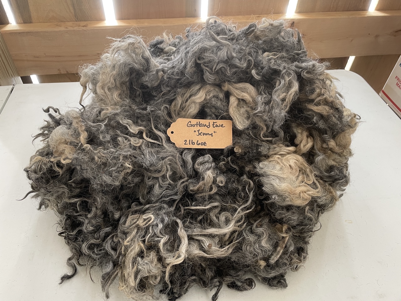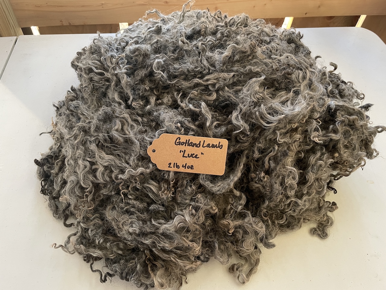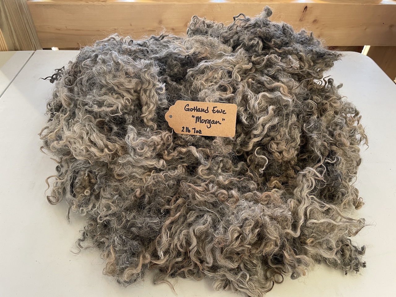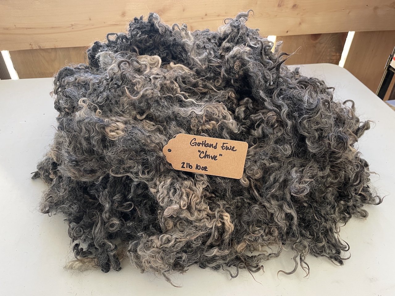 This is a raw, skirted, unwashed fleece from one of our wonderful Gotland sheep. We keep a small flock of friendly Gotland sheep on our farm in northern Wisconsin. They are rotationally grazed on pasture during the grazing season, and as a result our fall fleeces are exceptionally clean. Spring fleeces are typically shorter and have more of a “fluffy” coat that has kept them warm through the winter. Handspinners will delight in our fall fleeces, and felters & crafters will find the spring fleeces make lovely material to work with.