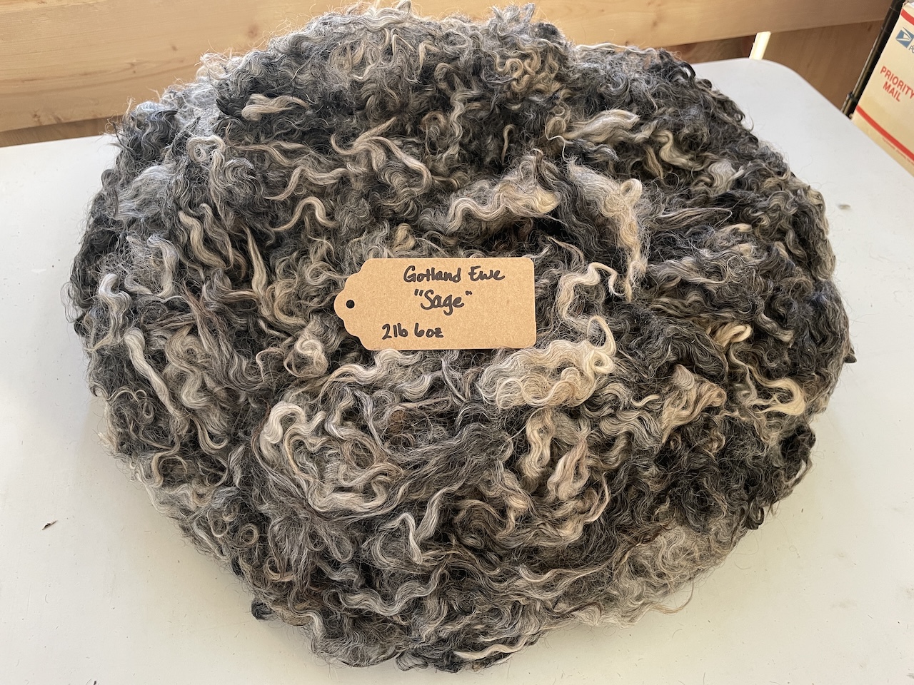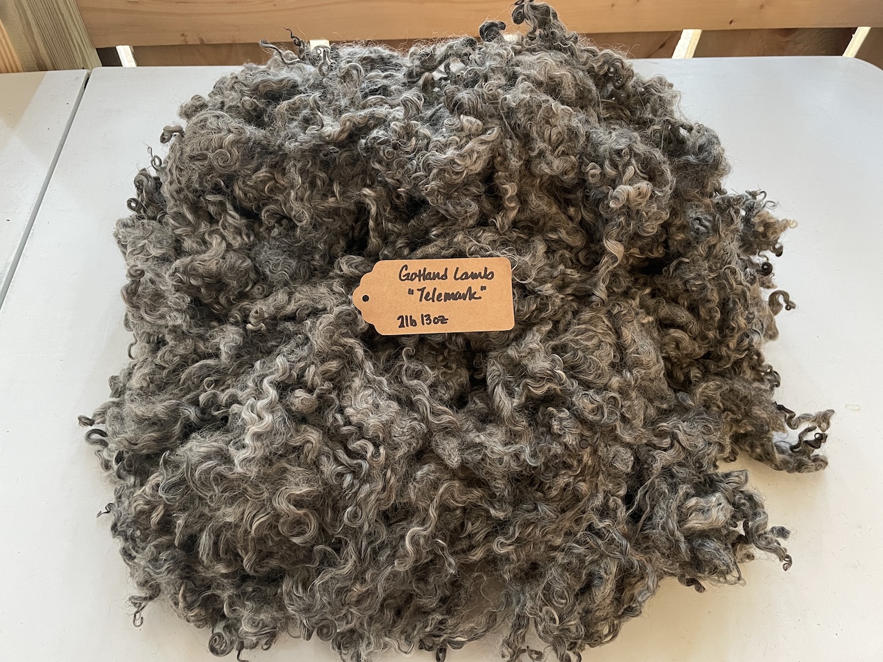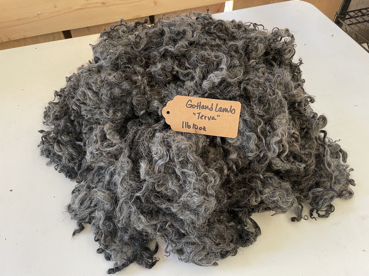 This is a raw, skirted, unwashed fleece from one of our wonderful Gotland sheep. We keep a small flock of friendly Gotland sheep on our farm in northern Wisconsin. They are rotationally grazed on pasture during the grazing season, and as a result our fall fleeces are exceptionally clean. Spring fleeces are typically shorter and have more of a “fluffy” coat that has kept them warm through the winter. Handspinners will delight in our fall fleeces, and felters & crafters will find the spring fleeces make lovely material to work with.