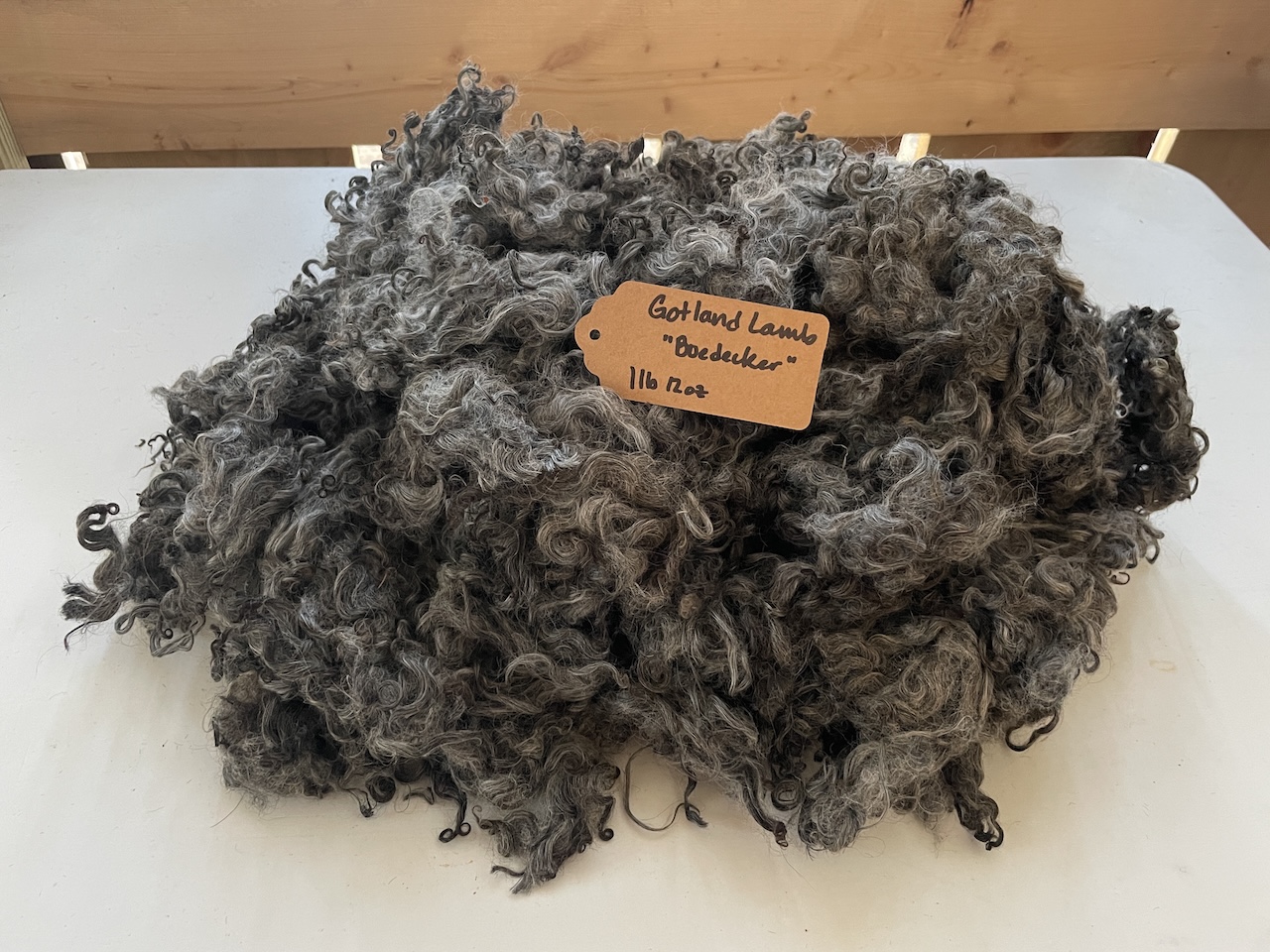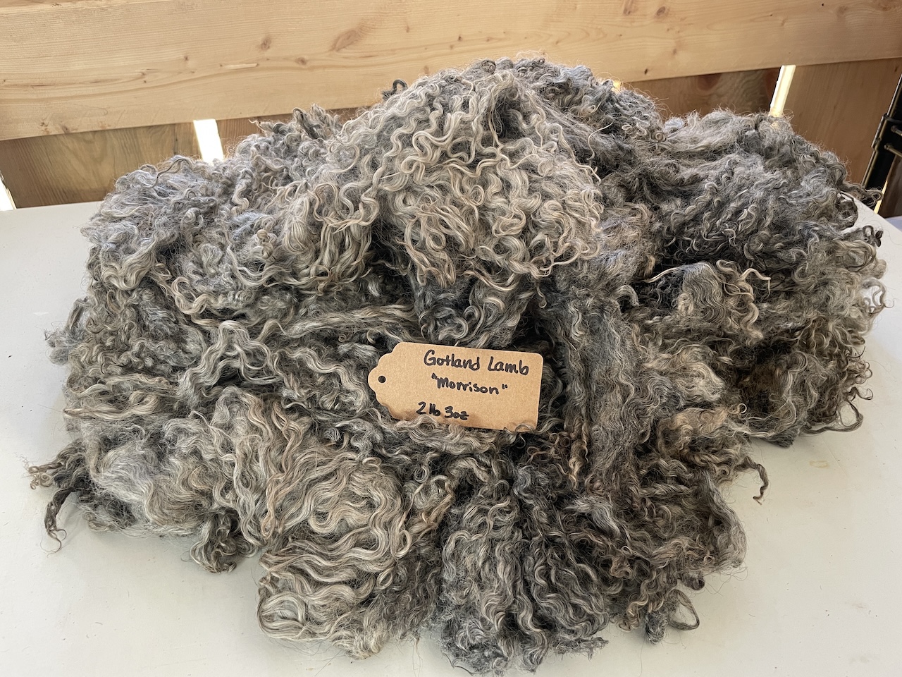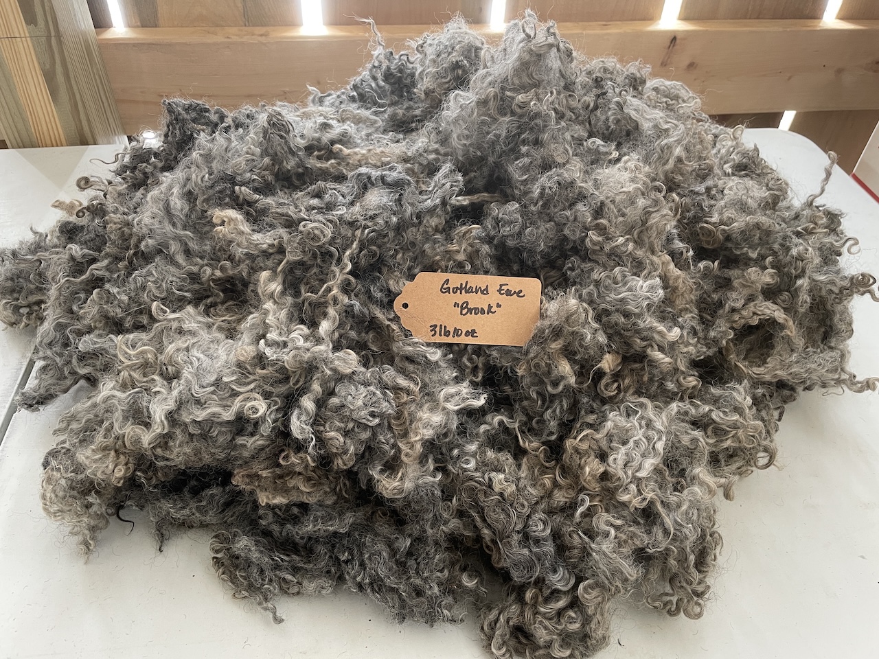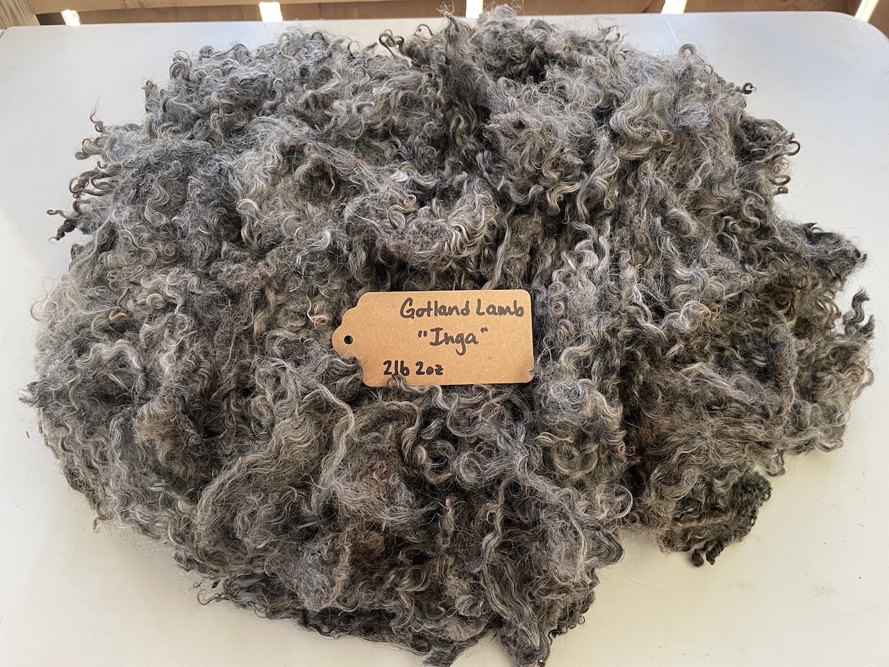 This is a raw, skirted, unwashed fleece from one of our wonderful Gotland sheep. We keep a small flock of friendly Gotland sheep on our farm in northern Wisconsin. They are rotationally grazed on pasture during the grazing season, and as a result our fall fleeces are exceptionally clean. Spring fleeces are typically shorter and have more of a “fluffy” coat that has kept them warm through the winter. Handspinners will delight in our fall fleeces, and felters & crafters will find the spring fleeces make lovely material to work with.